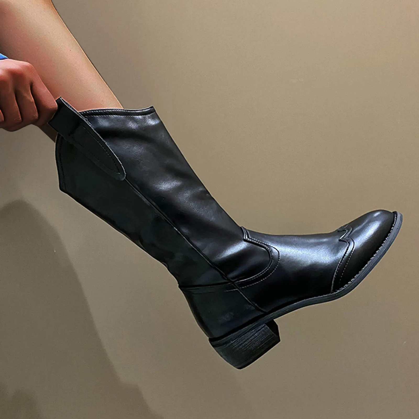 Boots Women’s Color Mid Thinner Fashion ThickHeeled Solid women’s boots