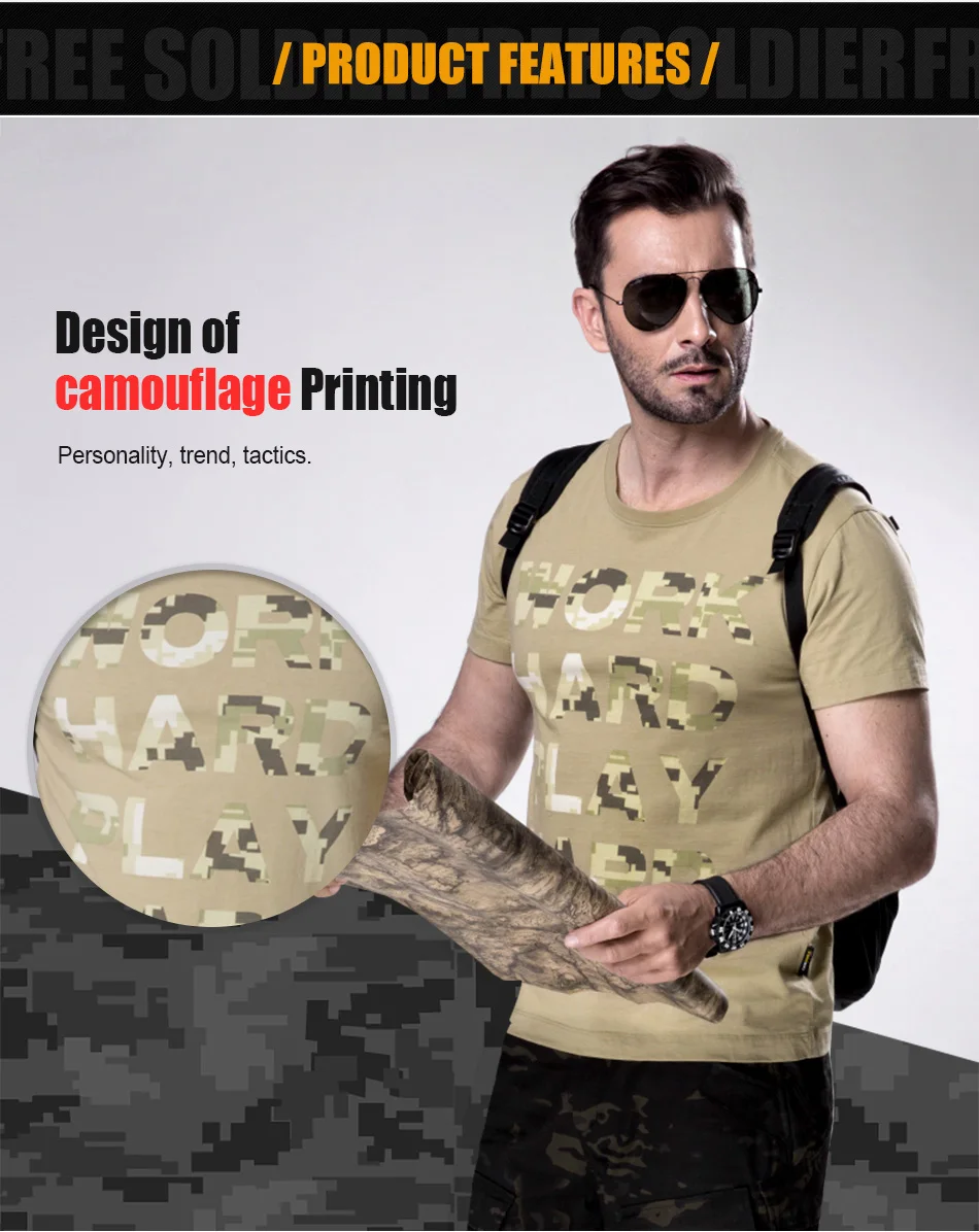 FREE SOLDIER outdoor camping tactical military men’s t shirt quick dry short breathable and wear-resistant T-shirt