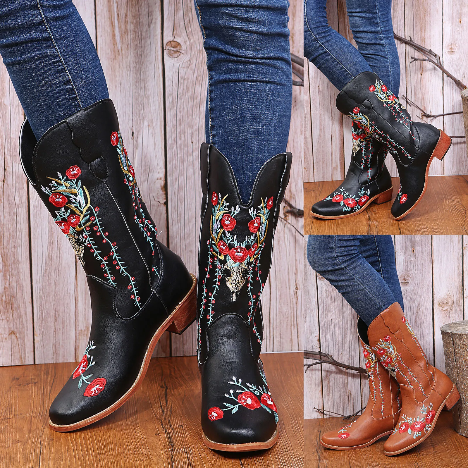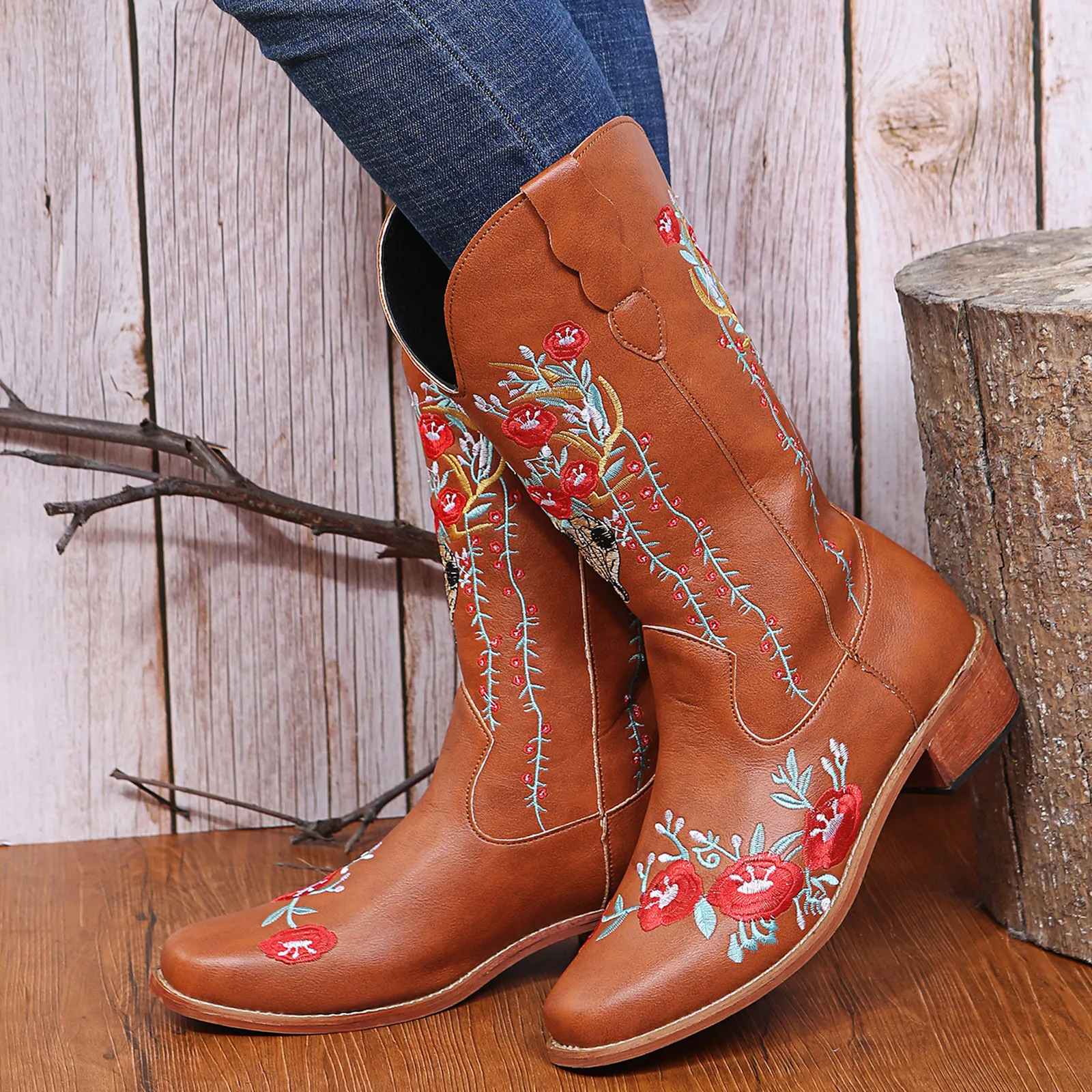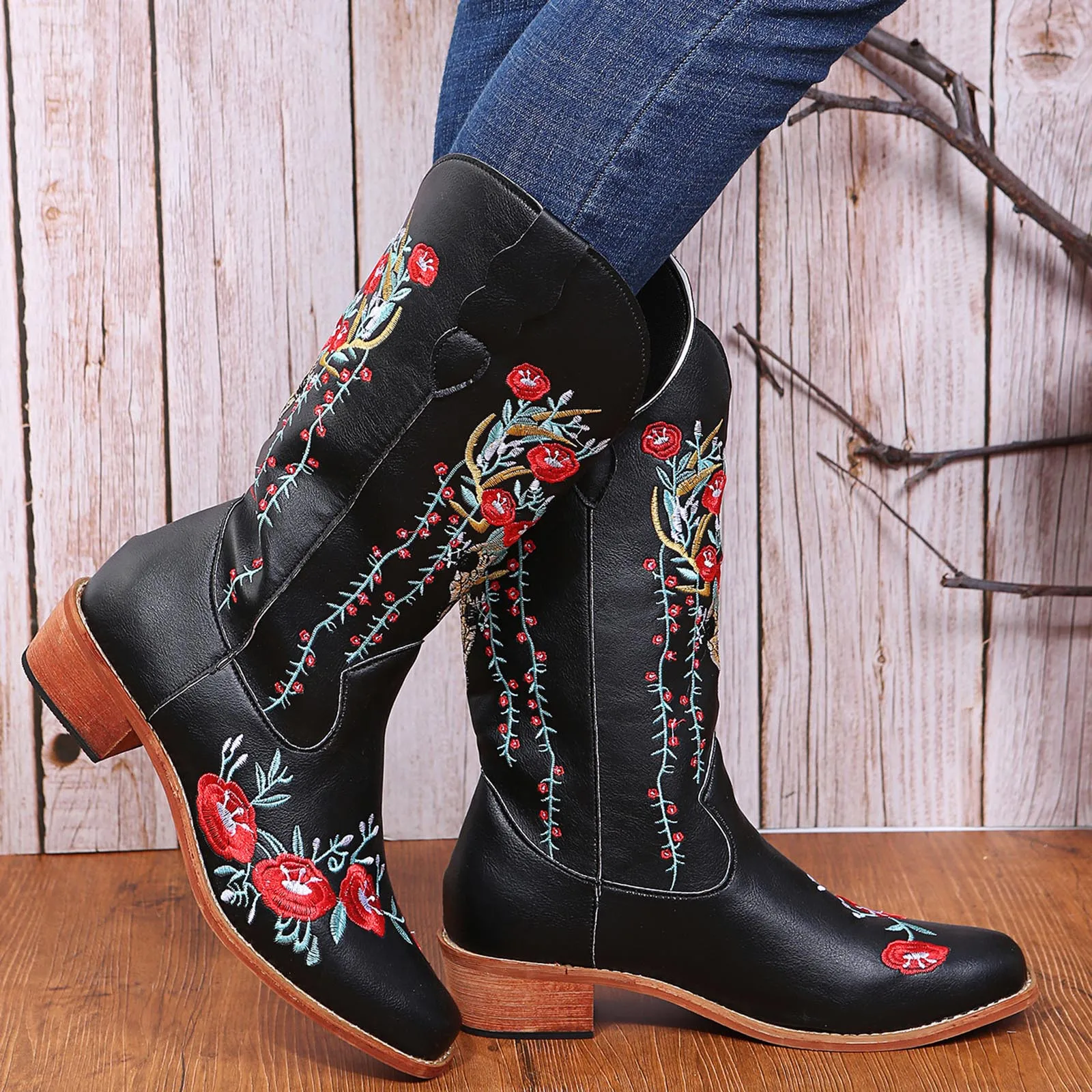 Vintage Cowboy For Womens Cowgril Boots Western Sunflower Motorcycle Boots Embroidered Boots women’s boots