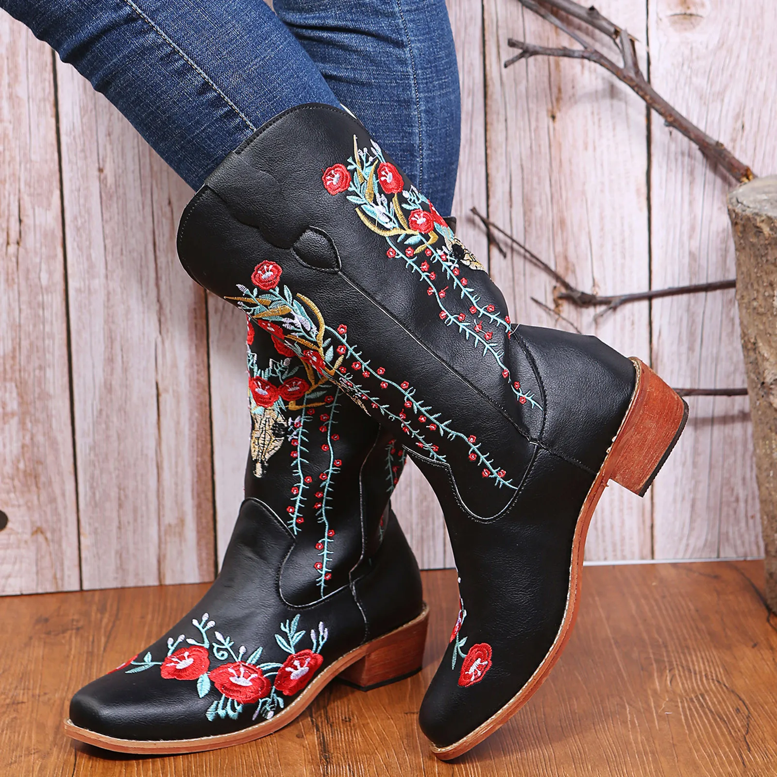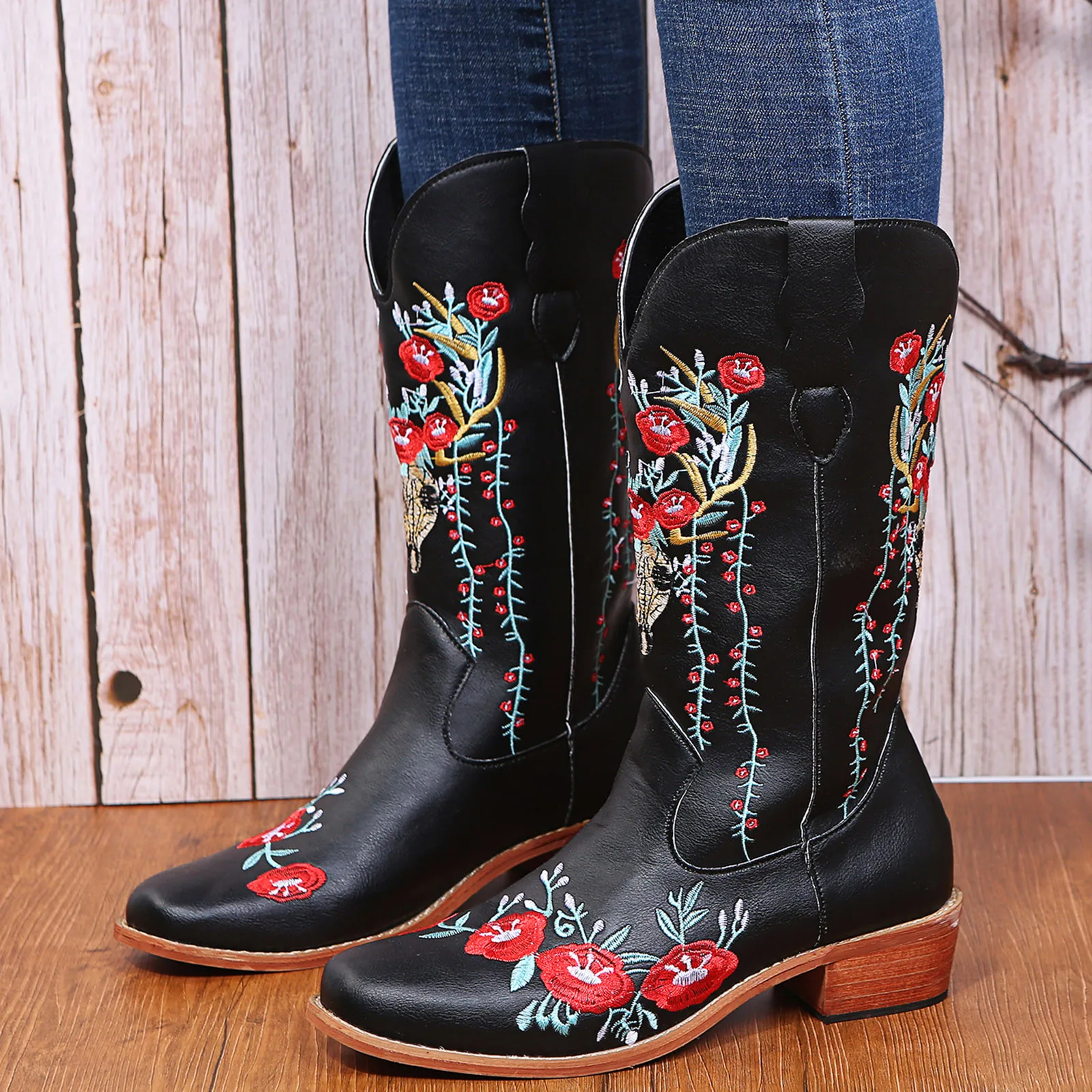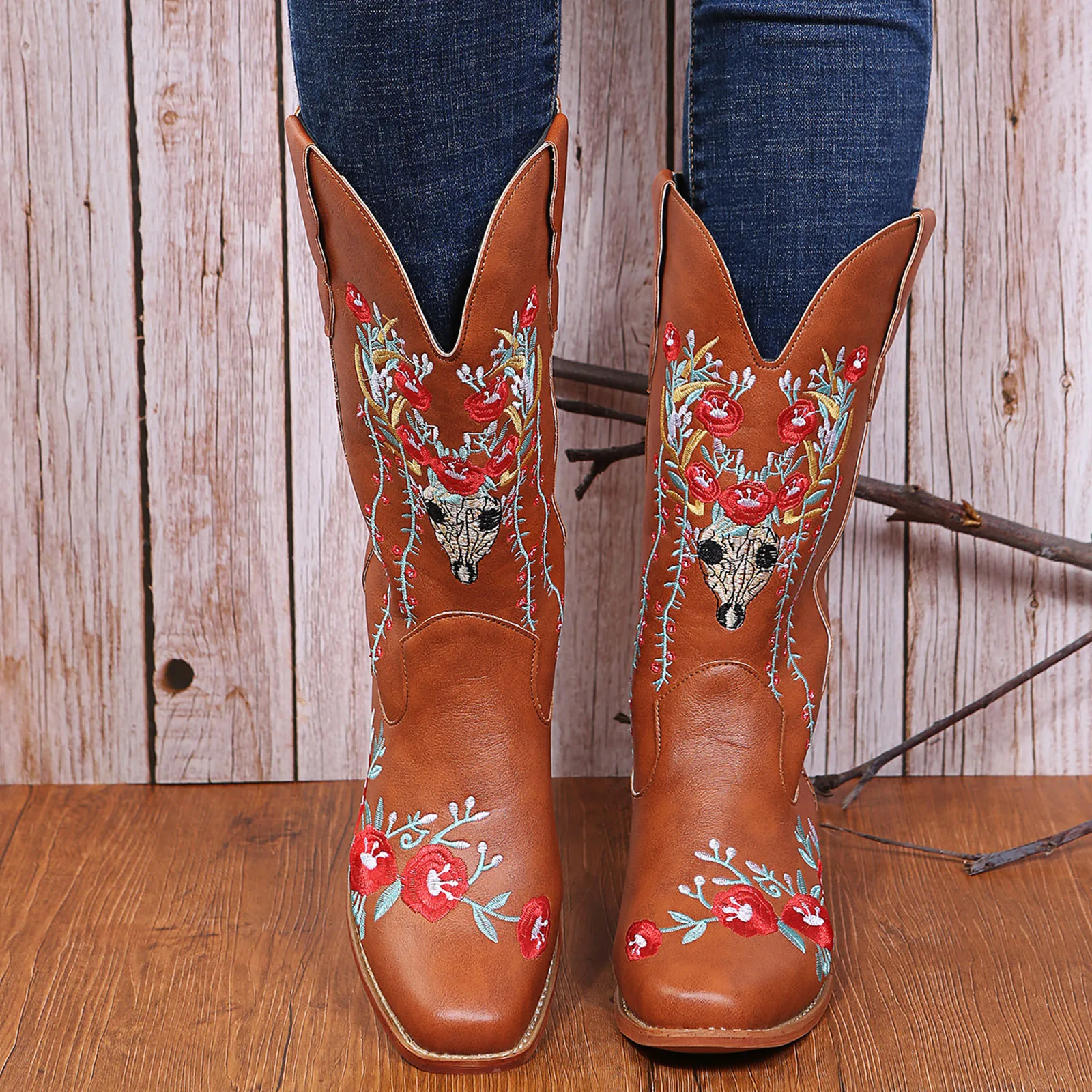 Vintage Cowboy For Womens Cowgril Boots Western Sunflower Motorcycle Boots Embroidered Boots women’s boots